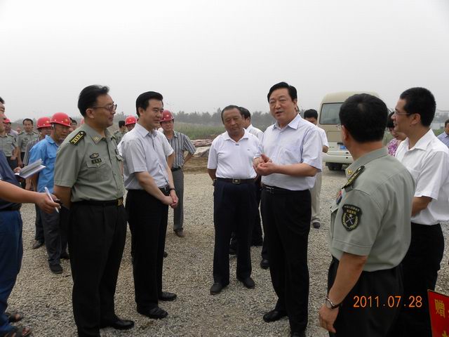 董事長(zhǎng)張?zhí)m柱陪同市委書(shū)記宋太平、市長(zhǎng)李謙視察工地